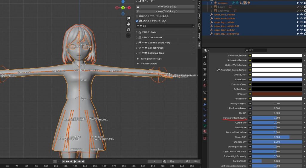 VRMモデルを出力する際に、アルファの設定のせいでアバターがおかしくなるので注意が必要。