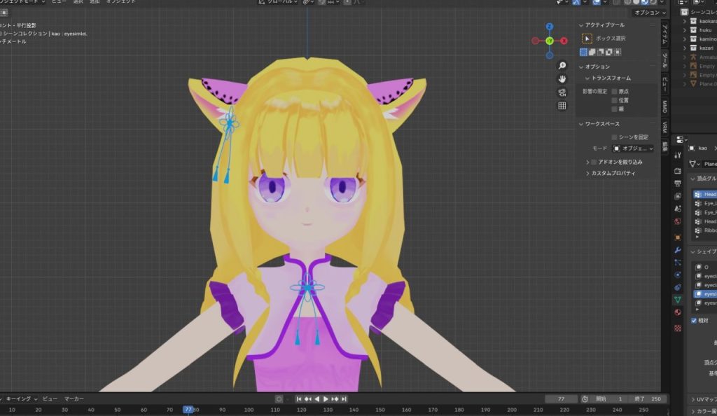 UV展開の仕方やスキニング、表情の作成、Blenderでの撮影方法など一通りのことが学べるので総合的にはやりきって良かったと思える書籍でした。
