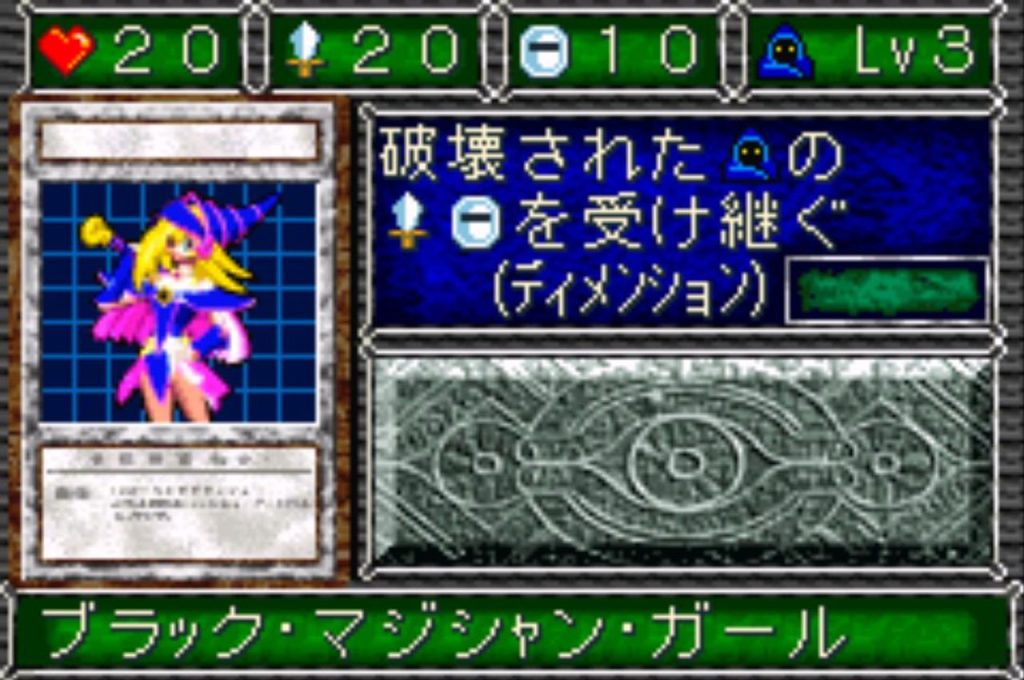 ブラックマジシャンガールなどレベル3以上のモンスターは、あの時代の携帯ゲームにしてはバトル演出がこっているので見ていて面白い。